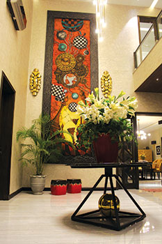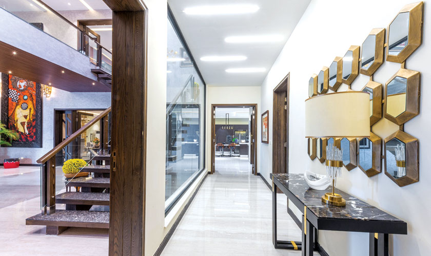 Keeping up to date with all the trends is essential for anyone who wants to conquer this market. The couple share pro tips, “We follow the modern trends through specialised websites and literature, also through international architecture/construction exhibitions. As far as colours are concerned, bright and solid colours like orange and bottle green are very in these days. Also, carvings with solid colours like black and white with a touch of brass is also becoming popular.”
