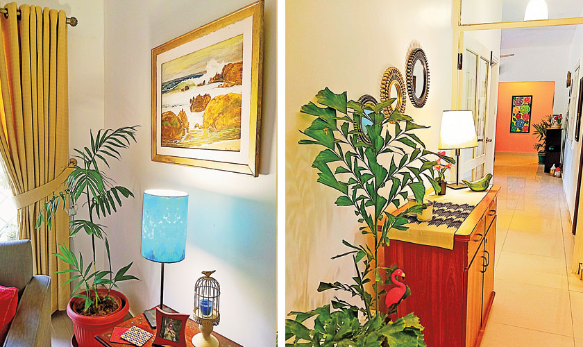 Plants and gardening is an essential aspect of Hina’s life. “We have a huge outer area on three sides of our apartment. One of the most important reasons for me choosing this place was I cannot live without plants. I have a lot of indoor plants which add freshness, beauty and life to the interiors,” she tells. “To one side of the apartment is a big garden with tall hedging. I have done some landscaping with rocks and different plants on different spots. The second side, I have turned into a vegetable patch and utilise it to grow seasonal vegetables. The third side has big fruit trees along with lots of potted plants,” adds Hina.