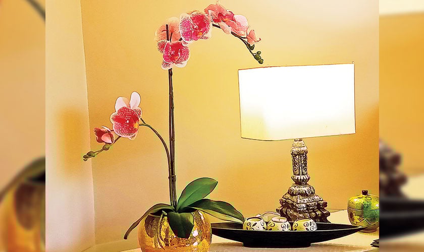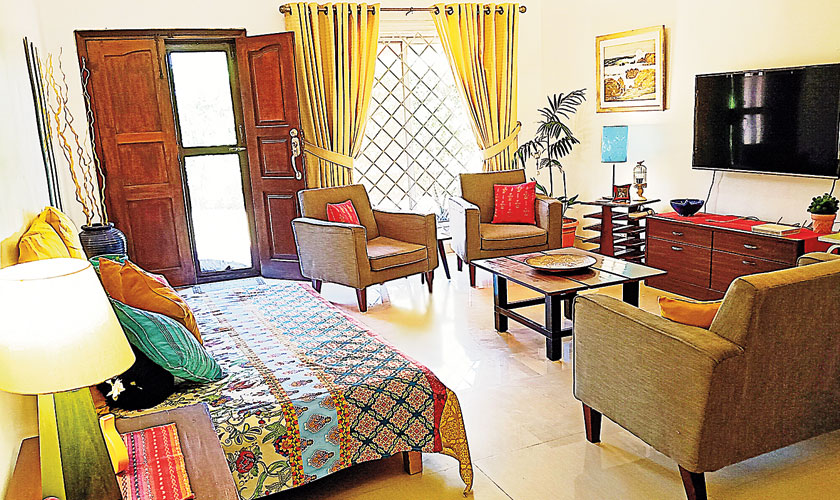 When asked which room is her favourite, Hina quickly interjects, “My favourite and most happening room in our home is the lounge/living area. It is airy and bright with lots of sunlight streaming in. A full length window, which overlooks the garden, gives it a pleasant vibe. Family time, watching television or entertaining informal guests, all happens in this room. While sunlight keeps the room fresh and bright throughout the day, my various, aesthetically placed lamps add drama to this space in the evenings.”