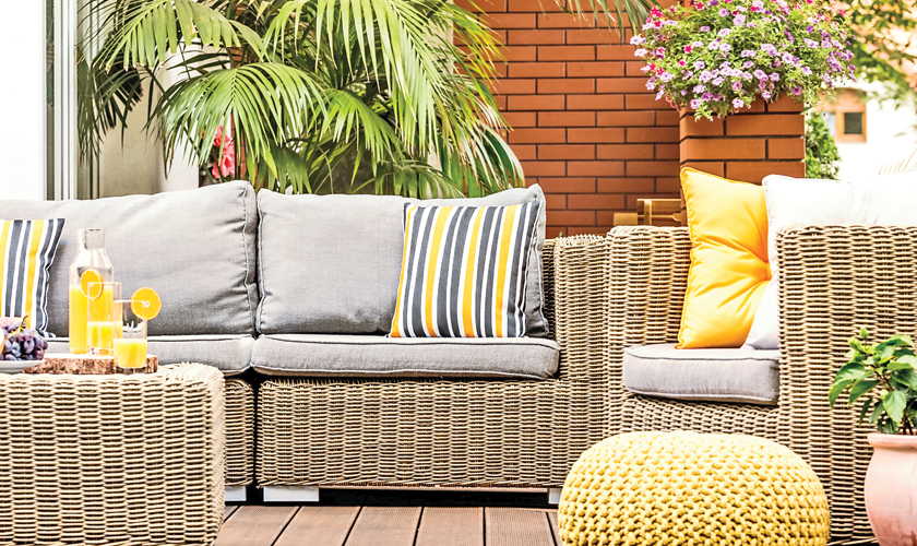 As for furniture and décor, she recommends, “Circular shaped rugs will complement the trending furniture designs. Terrazzo patterns and rattan weave textures are implemented through upholstery, soft furnishings and wall covering designs. Curve textures emerged a lot as a trending element in interiors and are greatly implemented through the furniture design with rounded silhouettes, chairs with circular backs, curvy arm couches, circular coffee tables and consoles with curvy legs.”