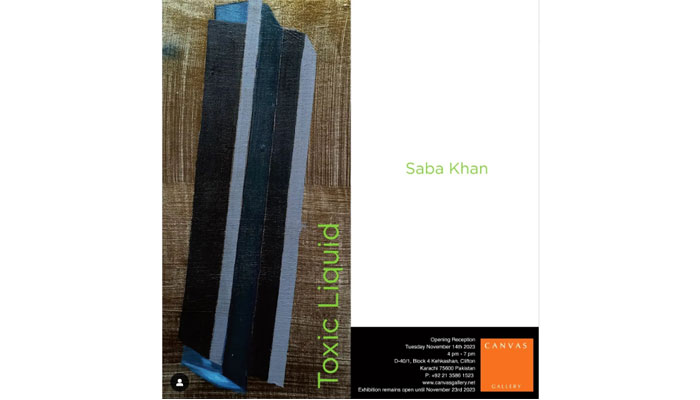 The Canvas Gallery is hosting an art exhibition featuring works by Saba Khan. Titled ‘Toxic Liquid’, the show will run at the gallery until November 23. Contact 021-35861523 for more information.