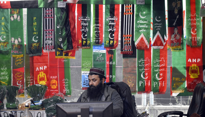 A vendor displaying political parties flags attraction for customers in his shop in the Provincial Capital ahead of the countrys general elections 2024 on January 23, 2024. — Online