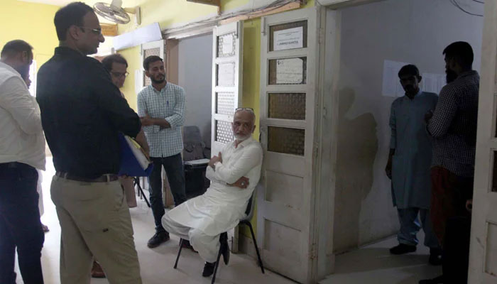 Social worker Sarim Burney is seen seated ahead of his hearing of a case against him pertaining to human trafficking at the city court in Karachi on June 6, 2024. — PPI