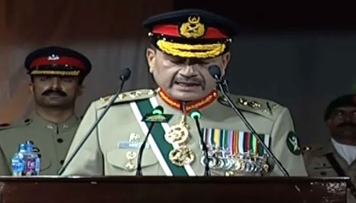 Gen Munir pointed out that Azm-e-Istehkam reflects our national pledge and guarantees security and needs of the time. He pointed out that terrorism has again surfaced in Khyber Pakhtunkhwa due to Fitna Al Khawarij’s anti-state and anti-Shariat activities. “I have stated for this Fitna that if they do not follow the Constitution of Pakistan and Shariat-e-Islam, then we also do not recognize them as Pakistanis,” he said.