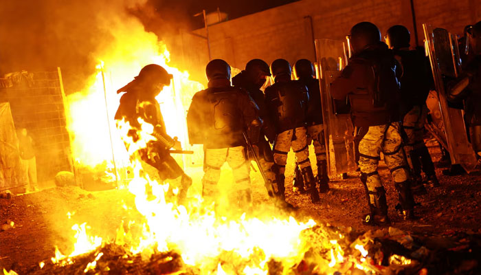 CHIHUAHUA, Mexico: Migrants trying to avoid arrest set fire to blankets and mattresses at a camp in the northern Mexican city of Chihuahua during a raid by government forces to clear the site in the early hours of Sunday.