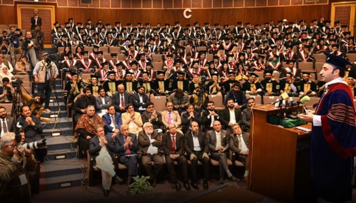 Bilawal Bhutto and Sindh Chief Minister Murad Ali Shah presided over the convocation ceremony. During the inaugural ceremony of the convocation, 19 PhD, 58 Master’s and 80 students of software engineering department were awarded degrees. A total of 977 male and female students were awarded degrees during the two-day convocation.