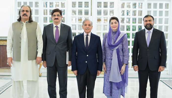 Deputy Prime Minister Ishaq Dar, Minister for Defence Khawaja Muhammad Asif, Minister for Kashmir Affairs and Gilgit-Balstistan Engineer Amir Muqam and chief ministers of the four provinces also attended the crucial meeting