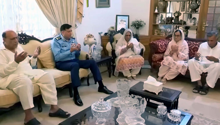 PAF chief visits family of Shaheed Squadron Leader Usman