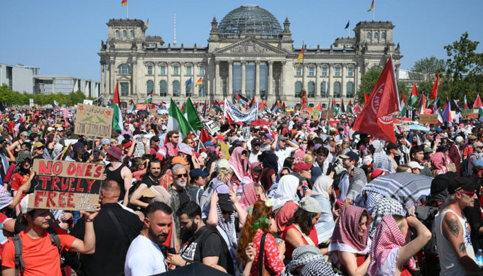 LONDON: Tens of thousands of pro-Palestinian protesters marched in London and Berlin on Saturday calling for an end to the war in Gaza, amid concerns that the Iran-Israel conflict could spark wider regional devastation.