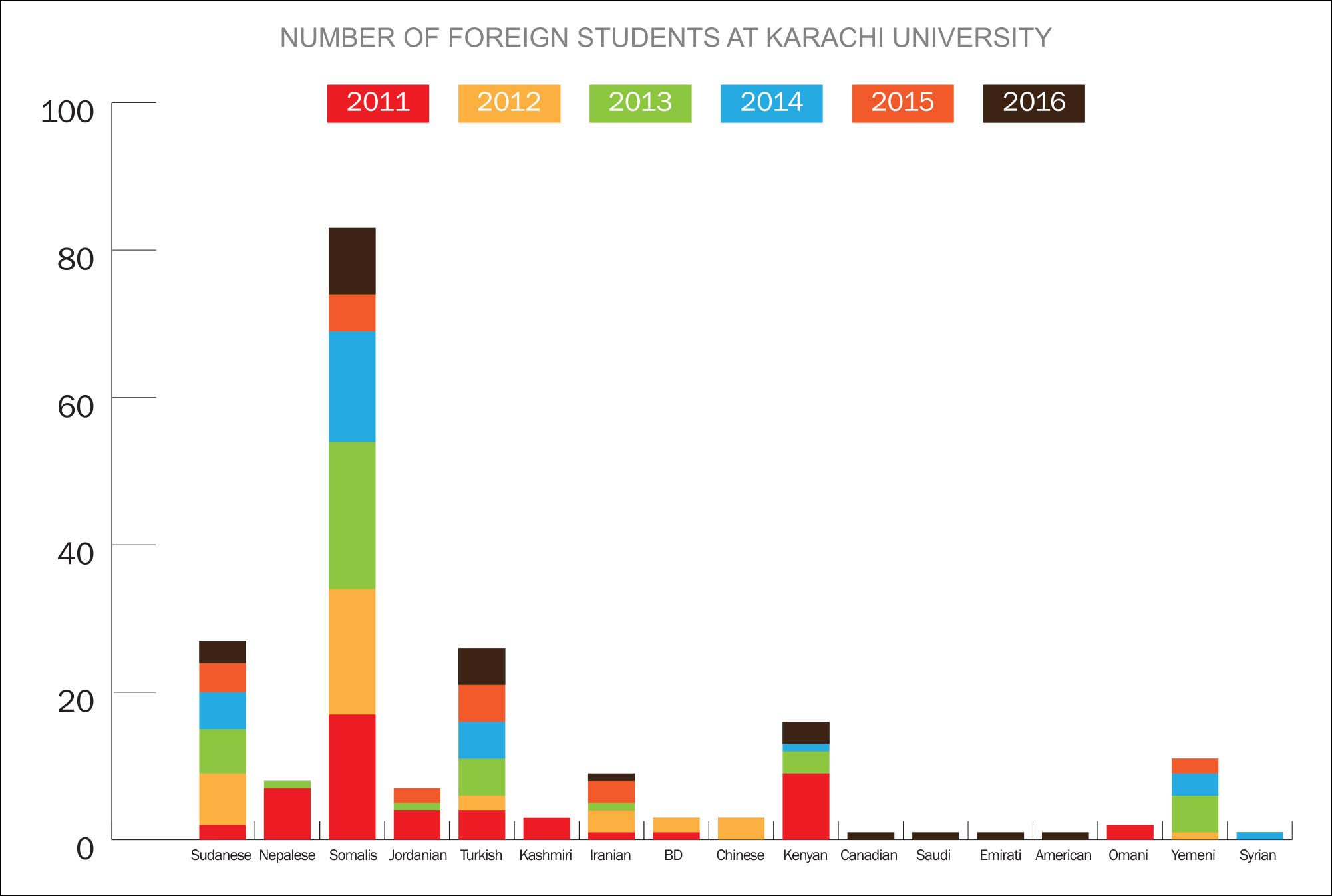 The foreign students meanwhile continue to head to the Urdu-dominated lectures and traverse the rather unwelcoming academic and administrative atmosphere in a place they have chosen to make a second home, hoping for things to get better for them or those who come to the city after them.