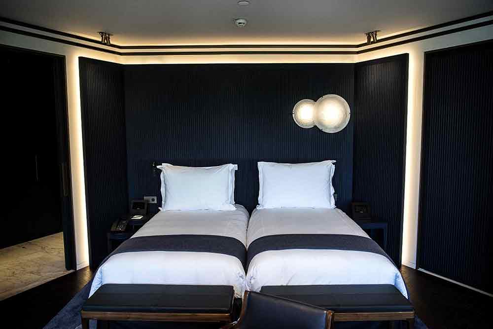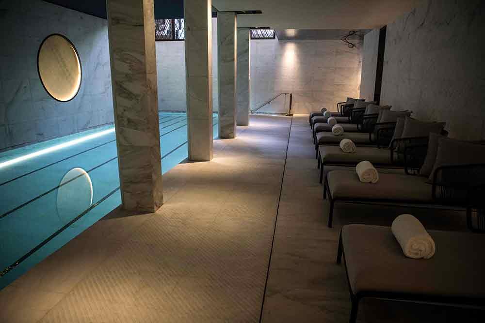 There is a softly lit 17-metre swimming pool, while the rooms feature discreet art-deco chandeliers and a lot of white marble: the baths were carved out of a 1.9 tonne block.