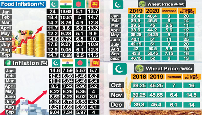The researchers said according to data, the price of one kg wheat was Rs39.25 in October 2018 that reached Rs46.25 per kg in October 2019, showing an increase of Rs7 per kg. It said the people had to pay an excess amount of Rs16 billion in last October. Similarly, in November 2018, the flour price was Rs39.25 per kg that went up in last November up to Rs45.65 per kg, showing an increase of Rs6.40, while the people had to pay an excess amount of Rs14.5 billion.
