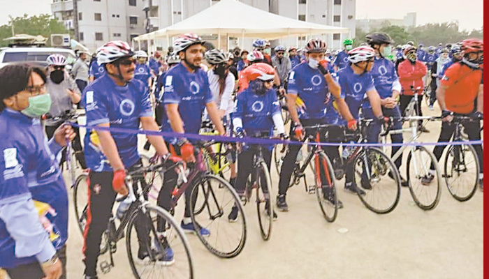 The cycling event and awareness session was organised by various organisations, including the Pakistan Endocrine Society (PES), Szabist, Rotary and local pharmaceutical firm Pharmevo to raise awareness regarding lifestyle modification and healthy activities in preventing and managing diabetes.