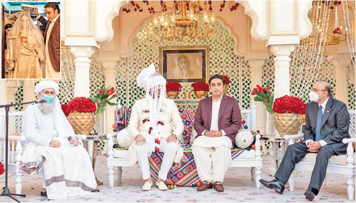The ceremony to solemnize the Nikah was held at Bilawal House in Karachi. The Nikah was solemnised by the spiritual and religious personality belonging to Thatta Al-Haj Ghulam Mohammad Soho.