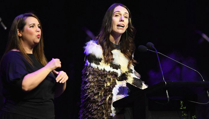 Ardern spoke last, clad not in a hijab as she did in the days following the attack to show her support, but a korowai, a M ori cloak symbolic of leadership.