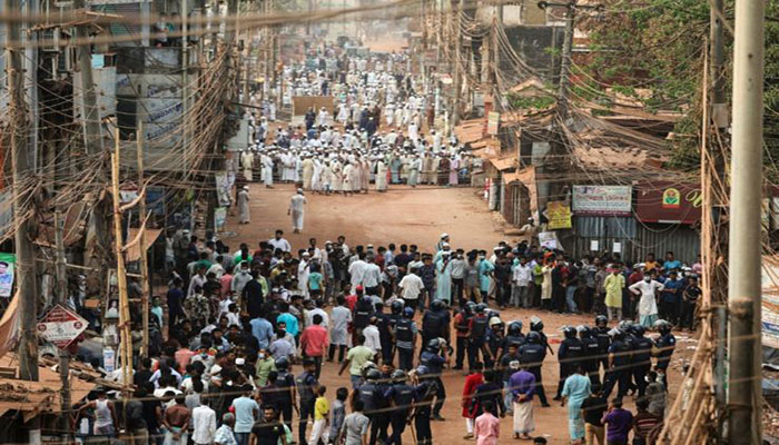 DHAKA: At least five people were shot dead as police clashed with Islamist demonstrators in Bangladesh on Saturday, a day after clashes between police and hardline Islamist protesters against a visit by Indian Prime Minister Narendra Modi left another five dead.