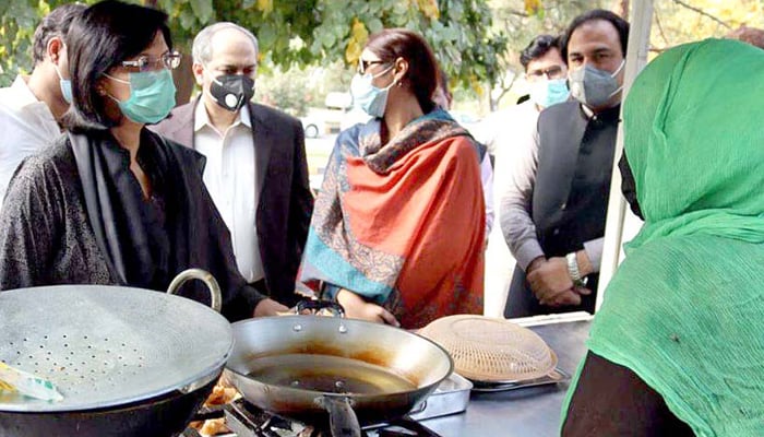 Speaking to media during the visit, Dr. Sania stated, “In line with the PM’s vision to create an enabling environment for street vendors, ‘Ehsaas Rehribaan’ has embarked upon furthering local vending to improve overall ecology. The model vending initiative is an outcome of collaboration between Poverty Alleviation & Social Safety Division (PASSD), Capital Development Authority (CDA), Metropolitan Corporation Islamabad (MCI), ICT Administration and Pakistan Institute of Development Economics (PIDE).”