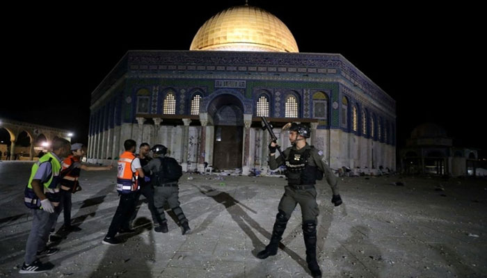 Speakers at a protest organised by the Palestine Foundation Pakistan condemned the brutal attack on Masjid-e-Aqsa by Israeli forces and termed the attack a continuation of Israeli terrorism.