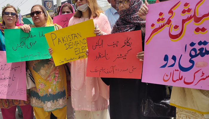 Apart from the protests outside the ECP headquarters in Islamabad, protests were also held outside the electoral body’s provincial headquarters in Quetta, Lahore, Karachi, and Peshawar. Similar protests were also held in the other districts.