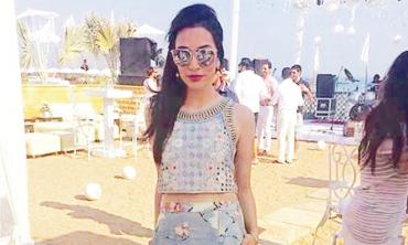 Who: Sana Ansari Where: Beach wedding party, Karachi Ansari showed off her svelte frame in an egg-shell blue Shehla Chatoor skirt and crop top at...