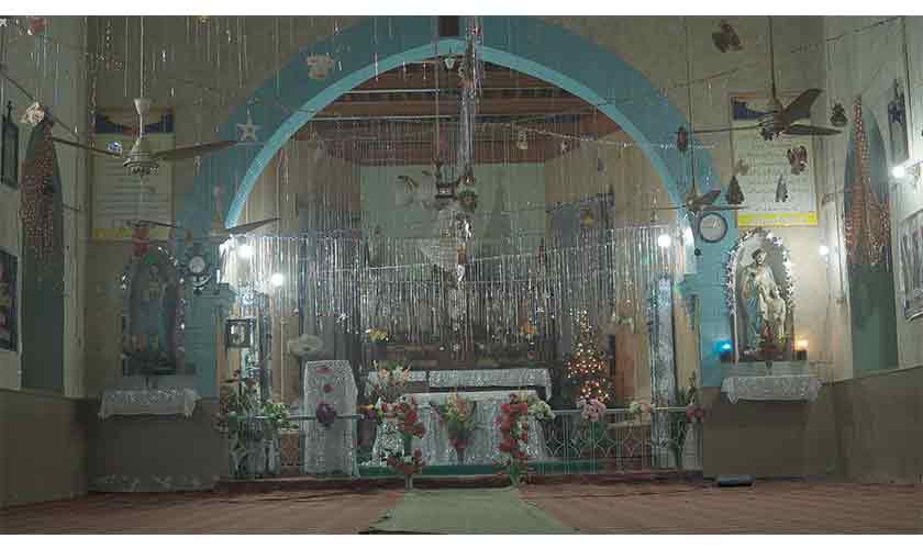Festive lights: A Bethelehum Star decoration on the rooftop of a house and a crescent figure on top of a mosque in the background. — Photos by Abdullah Moin AfzalSparkly: Bells, garlands and wreaths, fairy lights, flowers and tassels decorate a church ahead of Christmas Day in Faisalabad.Tableau: Children dressed as angels and shepherds for a nativity play.Veneration: Iconography of the Virgin and Child at St. Fidelis Catholic Church in Faisalabad.