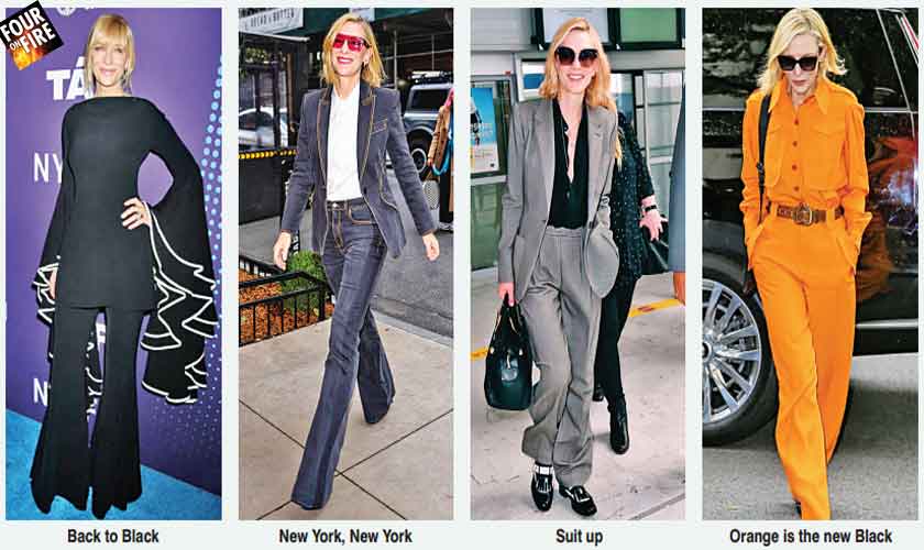 ‘Is orange the new black’ or is it just Cate Blanchett’s choice of accessories that made it look otherwise: the belt, shades and the