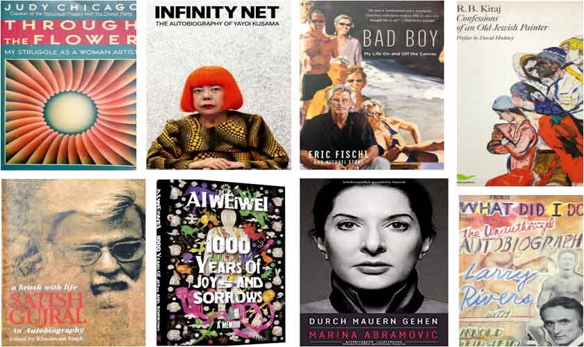 In addition, one comes across artists’ autobiographies, memoirs and accounts of their art practice, such as Larry Rivers’ What Did I Do?, RB Kitaj’s Confessions of an Old Jewish Painter, Eric Fischl’s Bad Boy, Ai Weiwei’s 1,000 Years of Sorrow and Joys, Infinity Net by Yayoi Kusama and A Walk Through Walls by Marina Abramovich. Two more books of interviews of artists and creative individuals are also part of this compendium, Sarah Thornton’s 33 Artists in 3 Acts and Hans Ulrich Obrist’s Lives of the Artists, and Lives of the Architects. In memoirs, quotes and interviews, the expression of an artist is modified, edited and presented in the best possible version for the reader. It varies from what he/ she had to utter in the presence of an audience at a literary/ art event.
