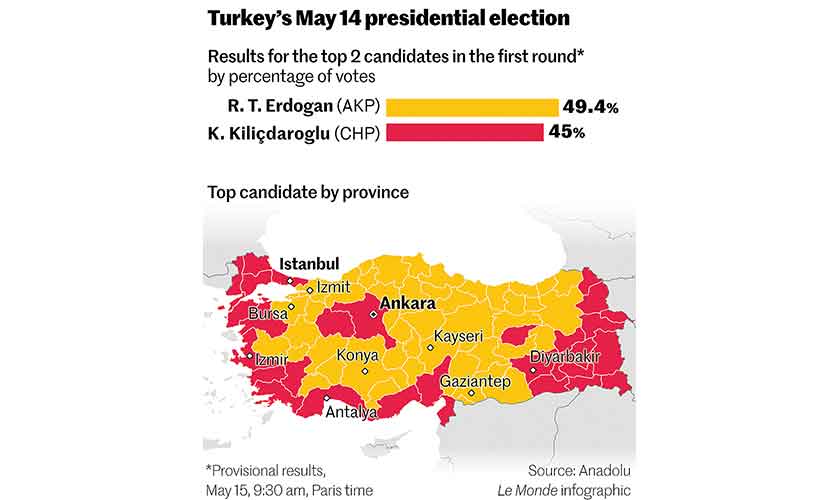 Turkey heads for runoff elections after Erdogan fails to get 50 percent of the votes in the first round