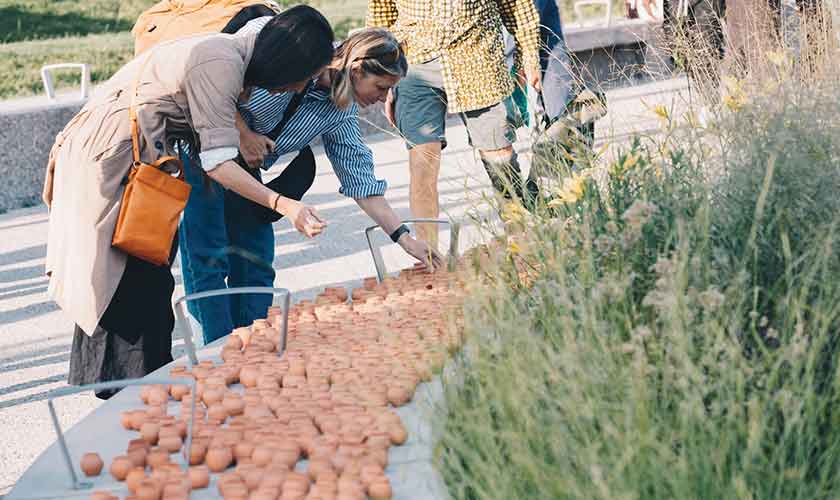 For this project, Syed took a small quantity of water from the Soan River of the Punjab to Manchester, where it was blended with the waters of Medlock River. Not surprisingly, water from the two sources with a distance of 8,720 kilometres in-between, was found to be the same; like the blood of a woman from Wah and a man from Manchester. Syed’s jar of water was mixed with the local liquid, and through Savinder Paul’s installation of rotating sculptures, offered to visitors, who collected it in tiny terracotta pots, to take it along the paths of Mayfair Park till they dropped the ‘foreign-infested’ fluid into the English stream.