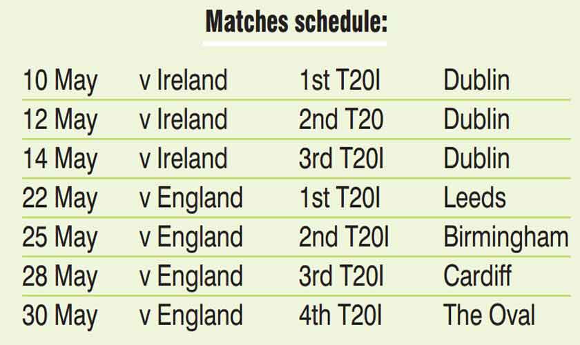 Pakistan will leave for Ireland on May 7 after a short camp.