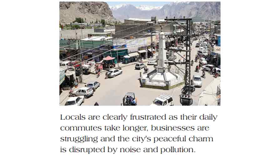 altistan, surrounded by huge mountains, has always been seen as a paradise for adventure and nature lovers. Skardu, the capital city of Baltistan, is at the centre of it all, with beautiful, pristine views. However, the rapid increase in tourism, sometimes called hyper tourism, has brought problems to this once-peaceful place. The number of vehicles has overwhelmed the city’s weak roads and services, causing issues for local people. Since Air Blue started flying to the city two years ago, Skardu gets more than four flights a day, each full of passengers.