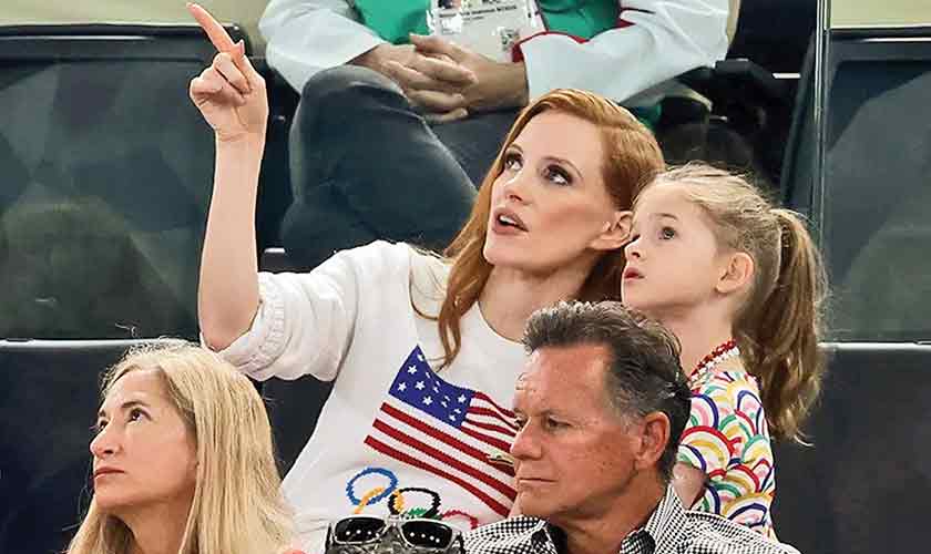 Hollywood actress Jessica Chastain traded the red carpet for the Olympic arena, attending the women’s gymnastics qualification competition with her daughter. The actress displayed her patriotic spirit by wearing a Polo Ralph Lauren knit sweater, the brand behind this year’s USA team uniforms.