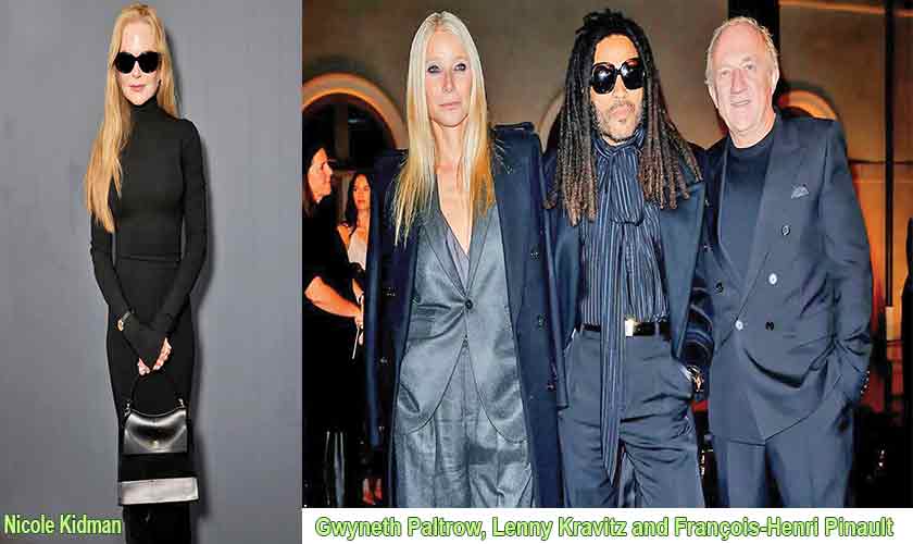 Gwyneth Paltrow, Lenny Kravitz, and François-Henri Pinault were seated together at the Saint Laurent Spring 2025 ready-to-wear show. Women’s empowerment was a central theme at the Saint Laurent show. We’d love to be present with this group of celebrities and ask Paltrow (who was channeling an all-business look) about “Conscious Uncoupling”, elaborating on how the idea of an amicable divorce and co-parenting extends to considering one’s former spouse as a brother. A case in point: her ex-husband, Chris Martin. Perhaps we need a Marvel movie to provide some context.