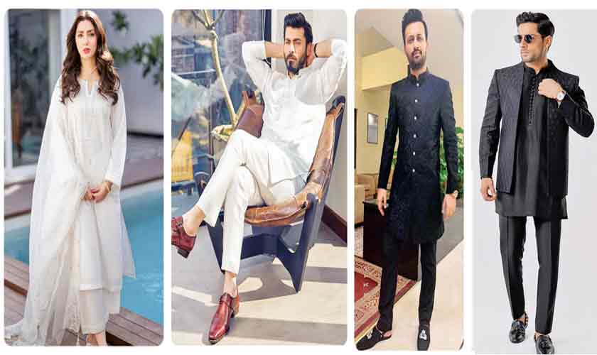 Actor Fawad Khan looks incredibly sophisticated in a white ensemble designed by his spouse, Sadaf Fawad Khan. The outfit features a classic white kurta with intricate embroidery along the neckline. It is paired with crisp, tailored white pants. A pair of polished brown leather monk-strap shoes adds contrast and depth, blending traditional Eastern attire with modern Western footwear. Fawad’s choice of accessories elevates the sophistication of the look. Overall, the ensemble radiates effortless grace, combining comfort with luxury. The outfit exudes a clean, structured appearance, making it the perfect choice for both casual and semi-formal occasions.
