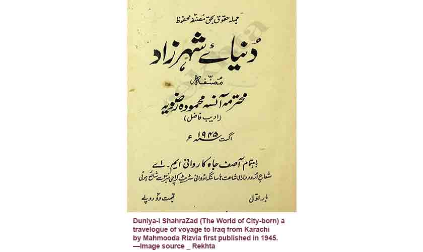The excerpts of Mahmooda Rizvia’s Urdu travelogue, Duniya-i-Shehrzad are translated by Ammad Ali.