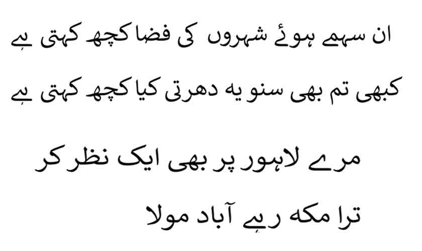 [O Lord, cast a glance upon my Lahore as well; may your Mecca forever prosper.]