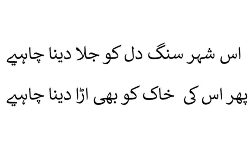 In both classical and modern Urdu poetry, the theme of vahshat recurs as a complex, nuanced concept deeply rooted in the unique experiences of Urdu poets, making it resistant to translation. While terms like estrangement, loneliness and anguish come close to capturing its essence, they fail to entirely encompass it. Vahshat is not an ephemeral feeling but an existential state – an anguish so profound that it compels the poet to escape from populated spaces to desolate, untamed places, the dasht. The city that was once a paradise, gradually transforms into a hellish environment. The city life demands constant effort, pushing for conformity, relentless competition and the pursuit of dominance in every field. This relentless drive leaves little room for the solitude necessary to reflect on the true meanings of existence. It is this very battle that gives rise to vahshat in the city. Below are two couplets by Ibn-i-Insha and Munir Niazi that encapsulate the poetics of topophobia – a fear or dread of the city.