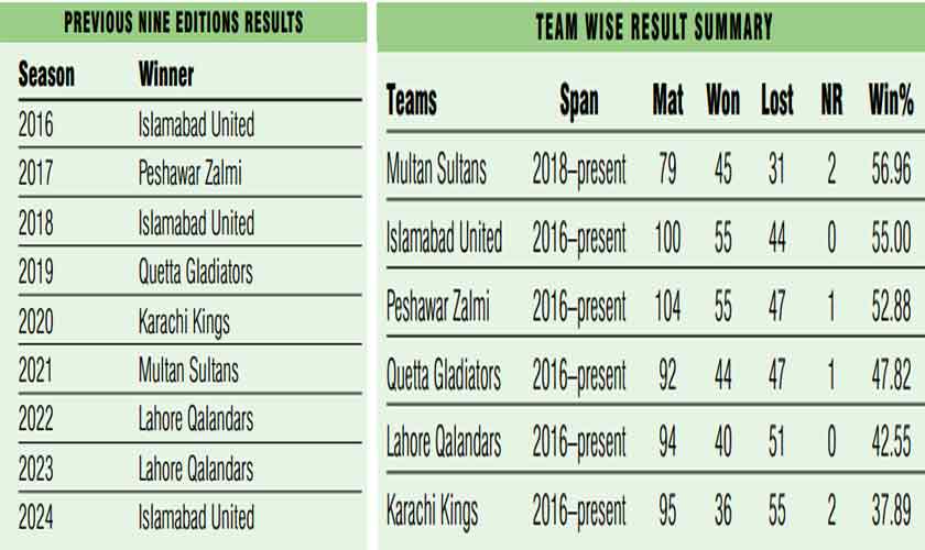 As the PSL unfolds in April and May, it overlaps with the Indian Premier League (IPL). Notably, this season marks the last of the six-team format, as the Pakistan Cricket Board (PCB) and the current franchises have confirmed plans to introduce two new teams by 2026, increasing the total number of teams from six to eight as confirmed by the Pakistan Cricket Board (PCB). After the ongoing tenth season, the ten-year lease ownership agreements with franchise owners expire in 2025.