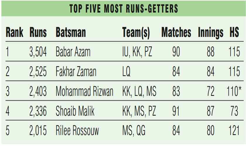 Among overseas stars, South Africa’s Rassie van der Dussen was the most successful batsman with 364 runs in seven appearances. He scored one century and three fifties with an average of 72.8 while his strike rate was 154.89.