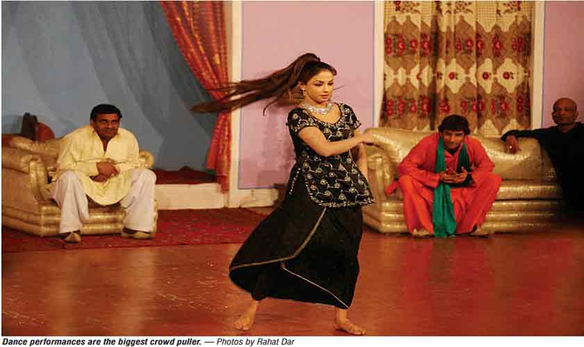In a late-night comedy musical show, Seemi Khan, an actress in her mid-30s, jumps on the stage in a body-hugging outfit, to loud cheers and whistles and breaks into a mujra on a Punjabi film song. The hall is jam-packed, mostly with men although there are also some couples.
