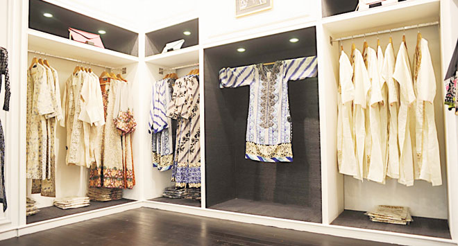 The longstanding empresses of Pakistani fashion launched their first ready-to-wear flagship store last year and then proceeded to open a whopping eight more as well as on online e-store. The varnished, glamorous Sana Safinaz stores stock a bit of everything: basic lawn tunics with light embroideries and print, evening-wear in the form of intricately-worked chikankari shirts, heavy thread embroideries and a selection of silk tunics, kaftans and jumpsuits, topped off by capsule collections of funky handbags, clutches, shoes and accessories.