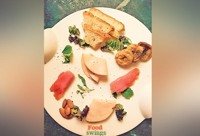 I personally love beautiful looking platters and even better looking food on top of them. I was once told that it is extremely difficult to find a birthday gift for me. Just in case anyone is wondering, you’ll find the answer here! This particular recipe is a no-brainer and requires everything that you might have in the pantry. I have used some turkey slices, salty smoked salmon, paired with some juicy and absolutely heavenly figs, nutty almonds and slices of herb bread (store bought). The complexity only lies in the display which you can creatively put forward at your own whim and fancy.