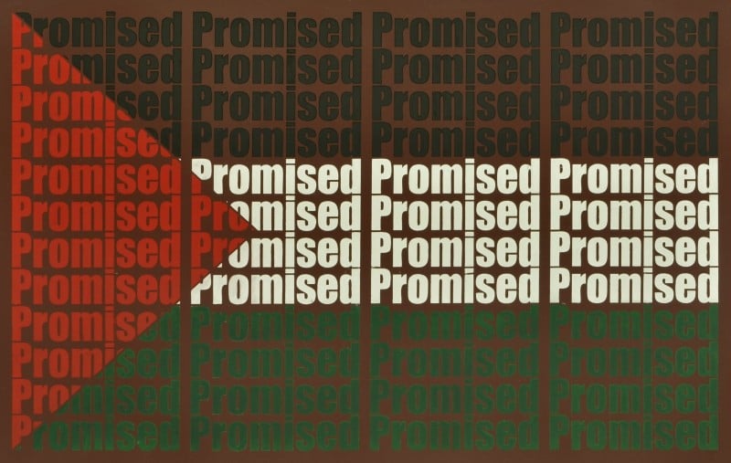 Sometimes, national identities may collide or end up being identical. Zeeshan created flags of two lands, Israel and Palestine, with a slightly altered description: ‘Promised Land’ for Israel and ‘Promised’ for Palestine. In a funny way, Zeeshan alluded to the promise that was made to two different peoples for the same land -- separately. One was fulfilled in 1948, the other is yet to be realised. Or to a political situation, in which both conflicting groups have the similar right to exist (what Amos Oz calls ‘between right and right’).