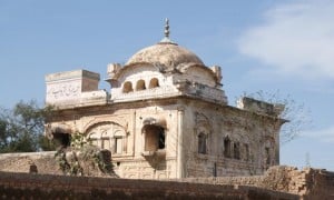 About 250 kilometres from Lahore, in a small town called Mandi Mangat, the remains of Gurdwara Bhai Bannu are a wonderful testimony to intricate artwork. The gurdwara is presently used by a local influential as his dera. Its structure is adorned with elaborate frescoes not just depicting Sikh epics but also Hindu deities such as Krishna with his flute and surrounded by his damsels.