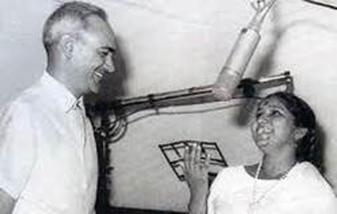 Then something happened in 1957 which Indian cinema has never seen before or since. Instead of the hero and star Shammi Kapoor on the posters of the movie Mujrim, there was a picture of OP Nayyar with a line below saying Sur ka Jadoogar (the Magician of Music). Here was a man whose name alone had started to spell the success of the film. Indeed, there must be at least 30-40 films which are remembered today solely for OPN’s music. The names of the actors, photography or even the storyline have been forgotten long ago, but their music lives on. A huge credit for this must also go to Binaca Geetmala – the first radio countdown show of Indian film songs, which even today is considered the most popular radio program ever in India, making Radio Ceylon the primary source of popular film music for the entire Indian subcontinent. Pakistanis were hooked on to it as much as Indians.