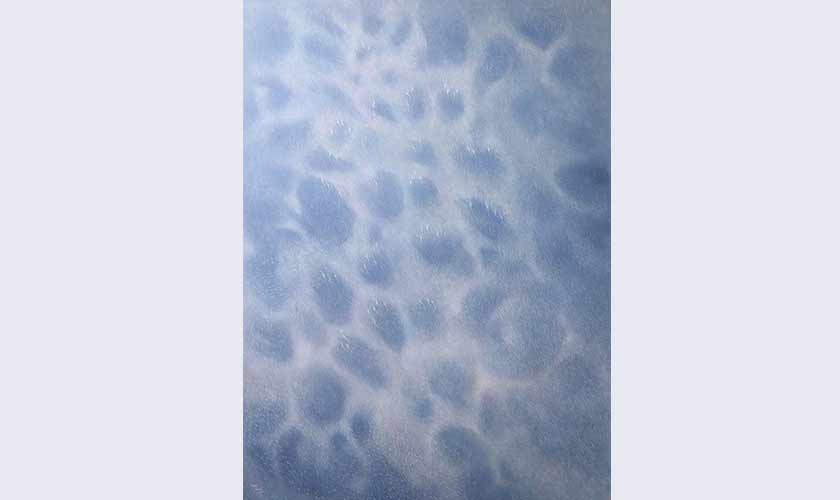 Playing with the foreground and background perspective, contrasting life size and the sub-atomic, Baloch has depicted his emotions on difficult subjects. We are pulled into the psyche of the artist who has documented his experiences. The silent and perfectly uniform beehive is gilded with gold highlights looming behind his subjects like a cage. In the painting, The Droplets, an intense moment is captured where the honeybee is in flight. It is being chased by un-alarming foliage and flowers. The honeybees are perhaps portraits as seen in The Garden Blemished. There is a vastness of depth that could be a kind of purgatory with a few souls hanging in limbo. The dandelions used as clouds in the painting, Transcendence, almost feel alive. There are silvery strokes of lines in motion moving the clouds away from a light source.