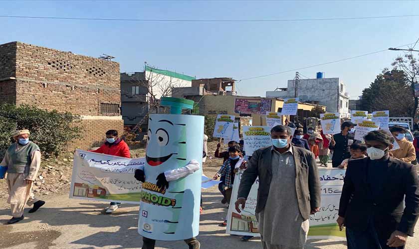 Standing at a distance, Ishrat is fascinated watching her two boys dancing to the beat of the drum. The dholwala is surrounded by children of various age groups from the slums in Sector E- 12 in Islamabad. With a microphone in hand, the community social mobiliser is announcing the dates of the new typhoid vaccine that will be introduced in Islamabad from February 1.