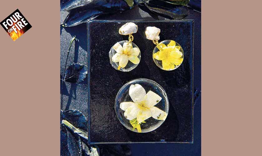 preserving them as best as possible. She then moulds the flowers into the resin to create the kind of necklace, rings or earrings she’s planned. It may not be a unique idea internationally but is definitely new to the local scene.