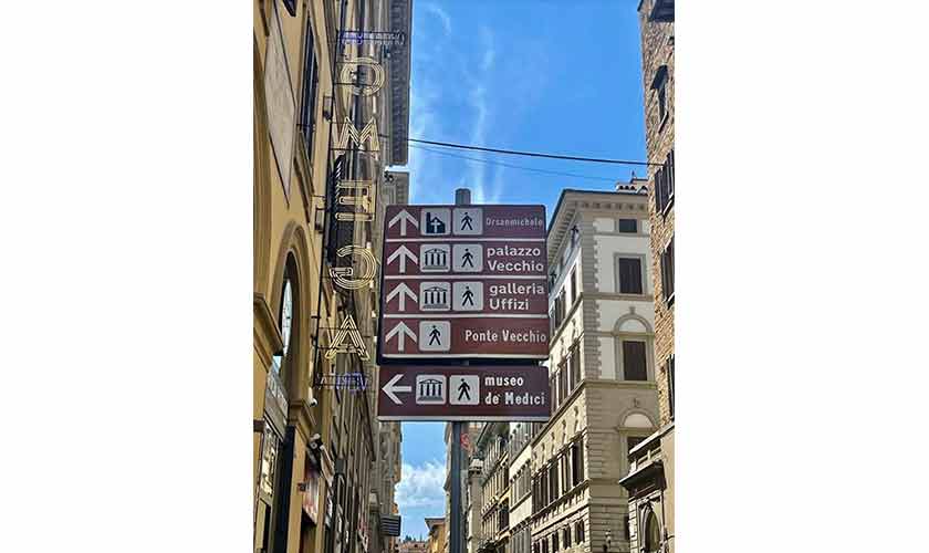 The city is easy to explore on foot. One can navigate through Florence without Google maps as all streets are marked and have signs for the major tourist attractions like the Piazza del Duomo, Uffizi Gallery, Gallery d-academia, Santa Maria Novella, Piazza Della Signoria, Ponte Vecchio and others. One doesn’t really need to take a cab or even a bus to explore Florence as it can be walked from one end to the other in an hour with most attractions five to 10 minutes from each other.