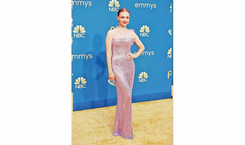 Amanda Seyfried – who took home a coveted acting trophy for her terrific lead performance in the limited series The Dropout – donned a strapless, sequined Armani Prive mermaid gown, accessorized with Cartier drop earrings.